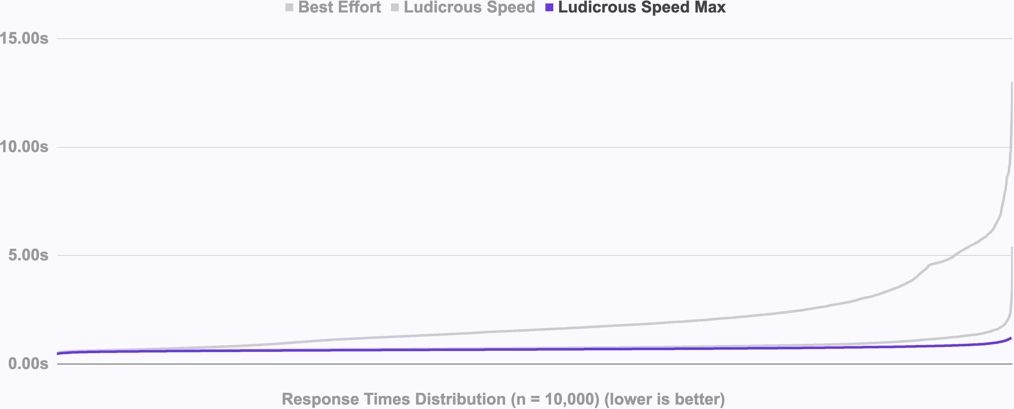 Ludicrous Speed Max is able to provide faster response times even against our Ludicrous Speed offering. (n = 10,000, lower is better)