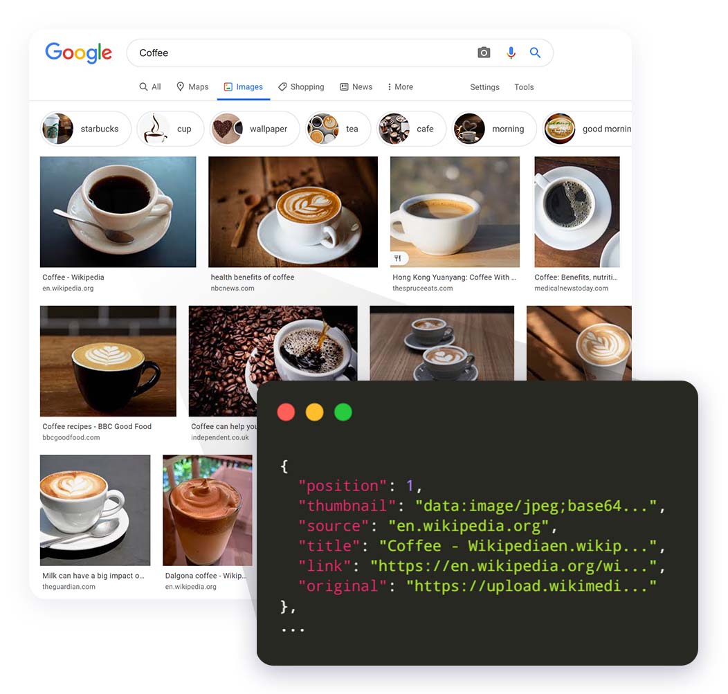 Extract and use images from various search engines to train your own machine learning models. Image results from search engines are the best source of images for machine learning data. It's diverse, universal, and already labeled.